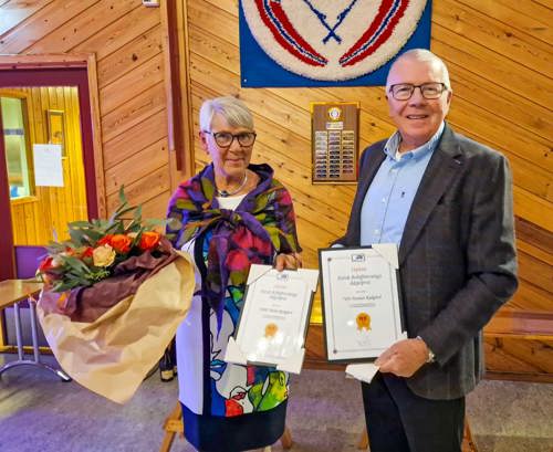 Kjell og Bente Larsen får tildelt merke for 10 års medlemskap